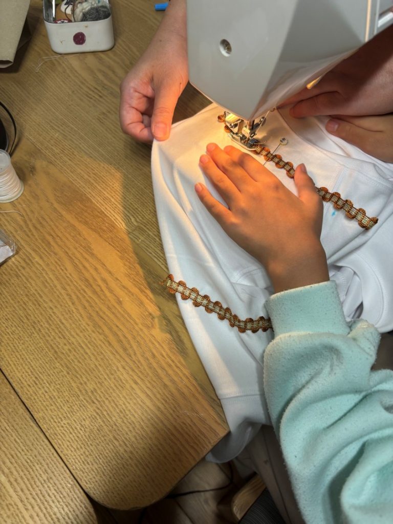 大人のボランティアさん、高校生のボランティアさんも入りみんなでファッションショーに向けて制作中、(もう少しで仕上がります)
