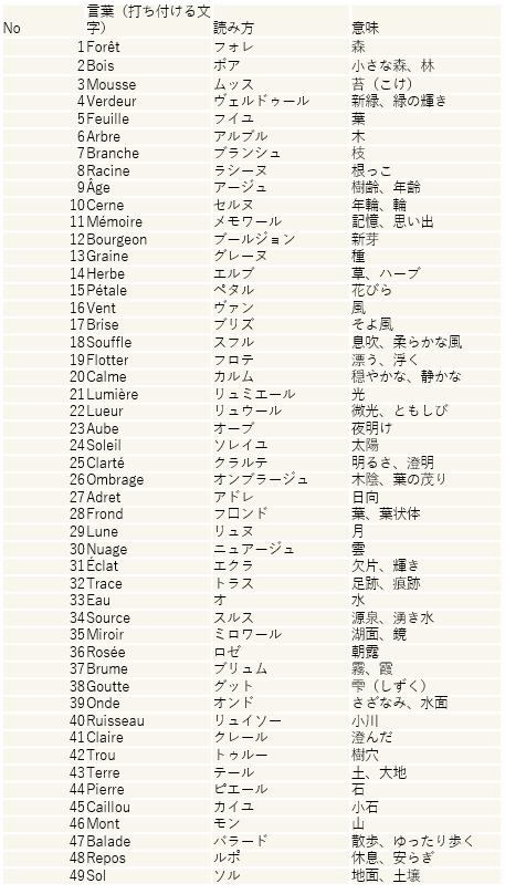 ことばは、下記より選んでいただきます。(先着順になりますので、オーナー希望者さんはお早めに)